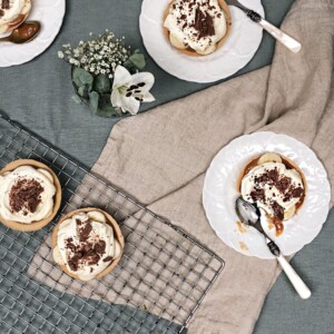 She mentioned that when she has people over and she needs a quick pudding her go-to pudding would be sliced banana, a lick of jersey cream and a crumbled up chocolate flake on top. This sounded like a pretty last minute pudding idea. But then why not also had a dollop of caramel for the full banoffee effect?