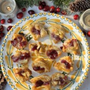 This is probably the easiest Christmas nibble you can make but with the most impressive results. These are melty Brie Puff Pastry Bites. Golden puff pastry with melted, oozey brie and sweet cranberry sauce, all in one little mouthful.