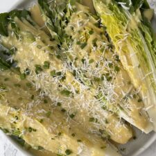 This keeps in the fridge for at least two weeks but it never normally lasts that long in our house. Delicious over little gem lettuce hearts for a seriously simple salad - it’s just so good!